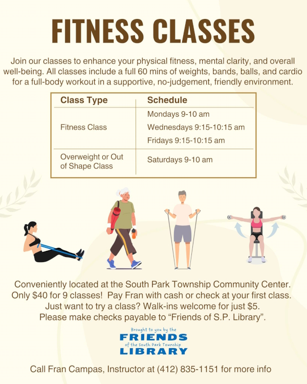 Stay active, feel great, and support the South Park Township Library this summer with Friends of South Park Township Library’s unbeatable fitness deal!