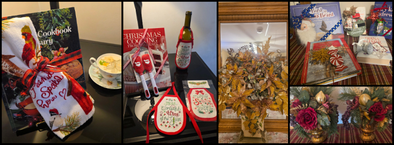 • Handcrafted gift items — including bottle aprons, candle tea cups, and creatively decorated seasonal books